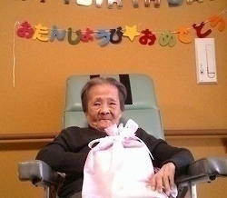食べ終わった後は、1月の誕生者の方に歌を唄ってプレゼントをお渡ししました。