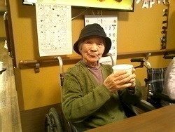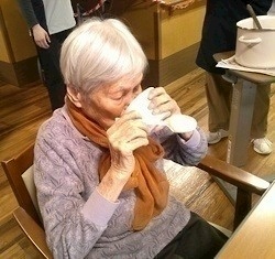おしるこを食べると「甘くておいしいわぁ~」と皆さん、笑顔で召し上がっていました。