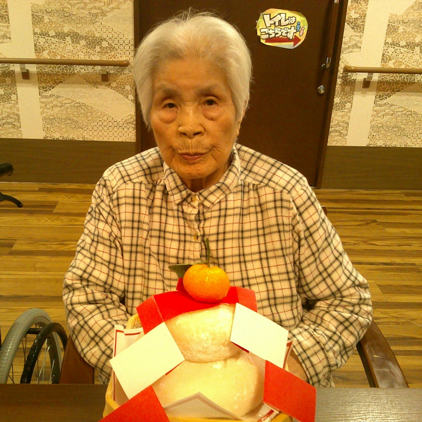 完成した鏡餅は、鏡開きの日まで各ユニットホールに飾っています。お正月の雰囲気が一気に広まりました。