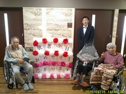 敬老会 2025年09月22日 9月15日は、敬老会を実施しました。 米寿、白寿の利用者様をお祝いしました。琴奏者の齋藤七恵様をお招きし、演奏して頂きました。琴の音色にうっとりされ、利用者様からアンコール!!という声をいただきました。また、職員一同より、利用者様へプレゼントをお渡しし大変喜ばれている様子でした。 今後も、皆様が穏やかに過ごしていただけるよう職員一同努めて参ります。 Tweet