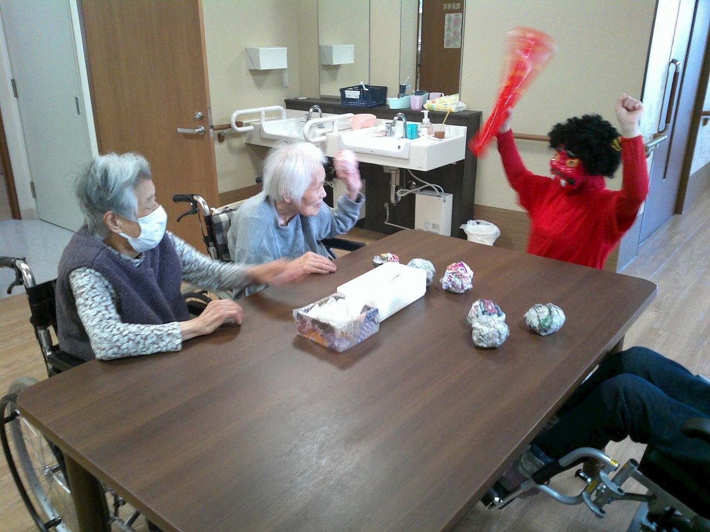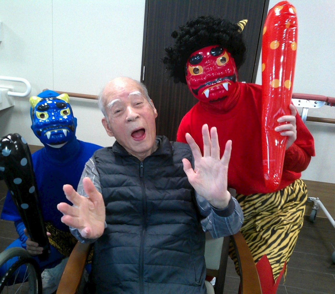 2月節分 2026年02月06日 2月は、節分で鬼がやってきました!! 「鬼は~外~!!福は~内~!!」の掛け声と共に一生懸命ボールを鬼に投げていました♪ 皆さん、笑顔で笑い声も上げっていました☺今年も皆さんに福が舞い込んできますように!! Tweet