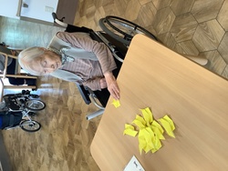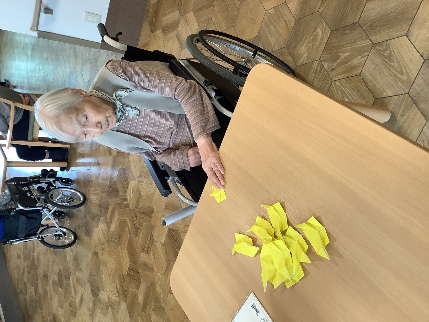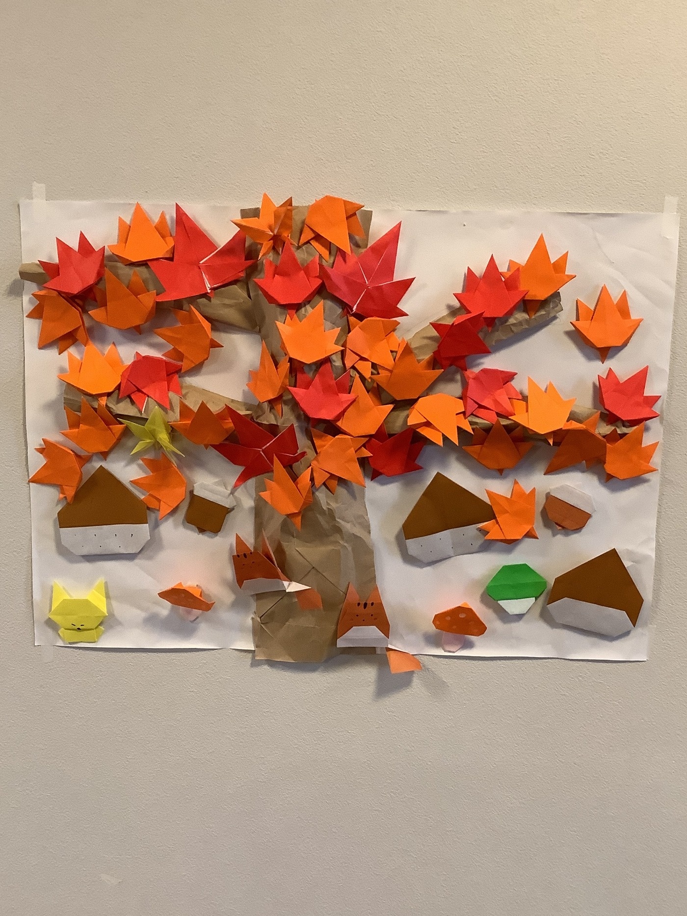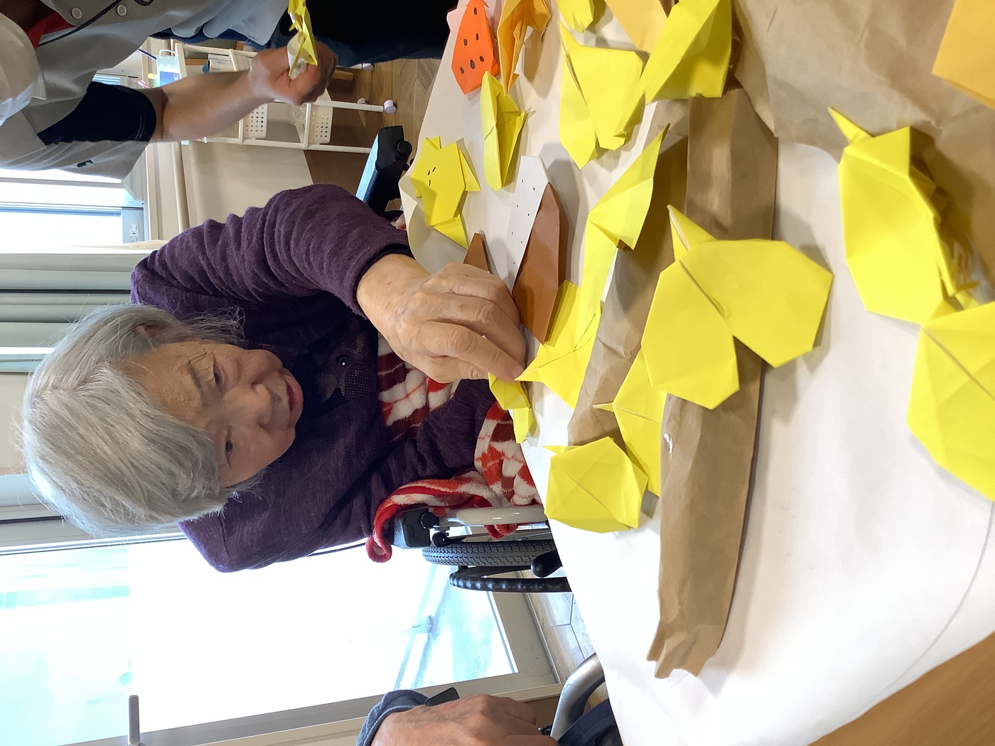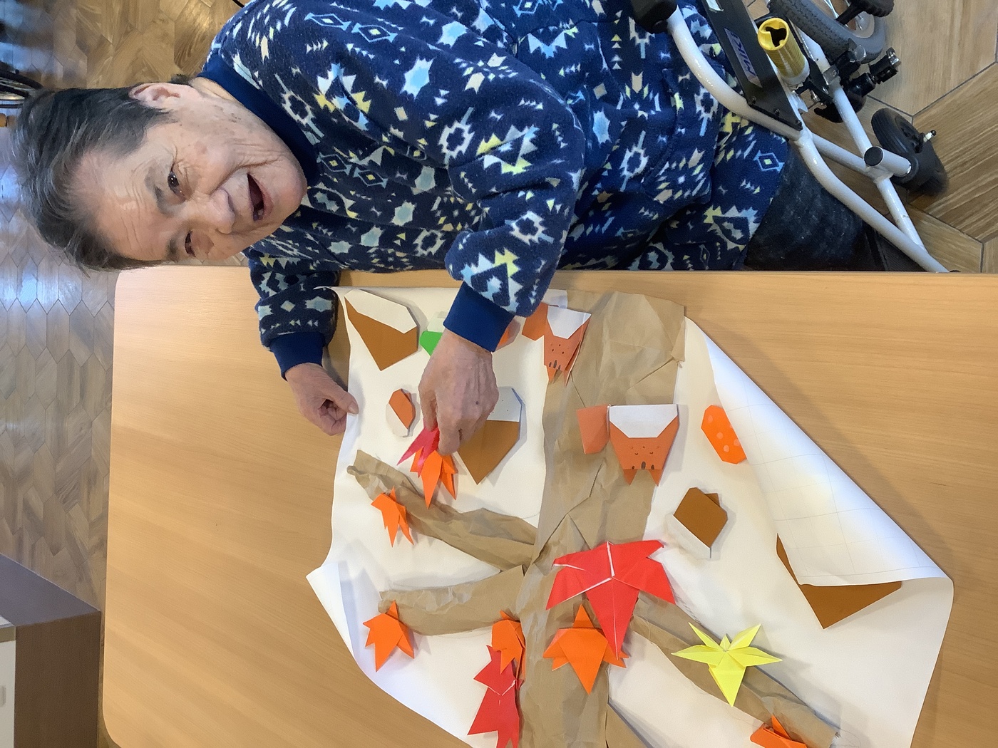 紅葉を作ろう 2025年12月08日 11月に入り、紅葉がきれいな季節になりました。ミーサでは、利用者様と一緒に紅葉の壁面作りを行いました。「きれいに折れるかな?」 綺麗な紅葉の完成。貼付け開始! 秋らしいレクリエーションを行い、楽しむことが出来ました!完成した壁面はこちらになります。