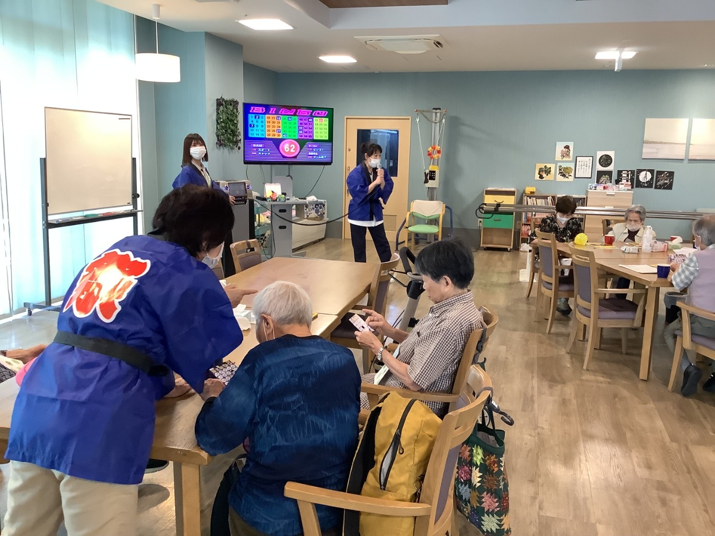 笑顔満開夏祭り 2025年10月09日 ナウラデイサービスセンターです。 9月に少し遅めの夏まつりを全曜日で開催しました。今年は夏の暑さが長引いたこともあり、9月でもまだまだ夏祭り気分でした。 たこ焼き、かき氷、ヨーヨー釣りでお祭り気分を味わい、最後はビンゴ大会で大盛り上がりしました。 利用者様からは、「夏祭りに行く機会も減ったから楽しかったです。」との声が上がりました。夏の終わりを締めくくる楽しい一日となり、職員も心に残る行事となりました。 Tweet