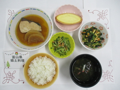 富山県の郷土料理 2025年10月27日 ナウラテラスでは毎月1回郷土料理を取り入れています。 今年度7回目の郷土料理は富山県のブリ大根、よごし、とろろ汁です。 「ブリ大根」は、ブリのアラを大根と一緒に醤油で煮付けた料理です。魚と大根にしっかり味が染み込むように調理しました。 皆さま、「魚と大根が柔らかくて美味しい」と笑顔で召し上がっていました♪ Tweet