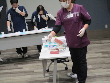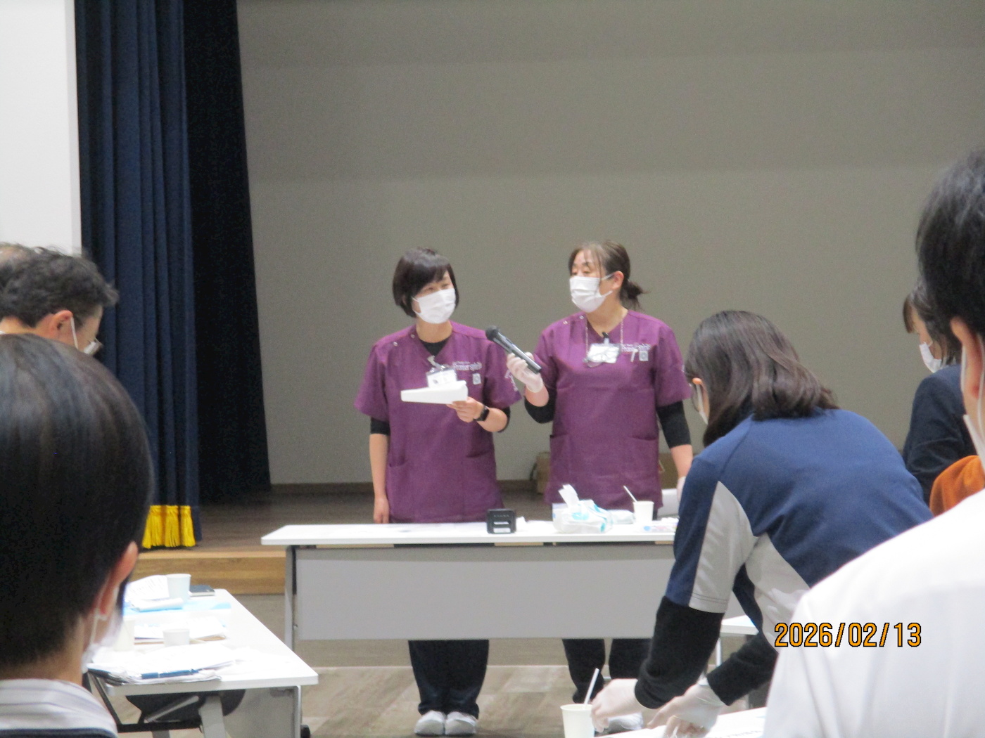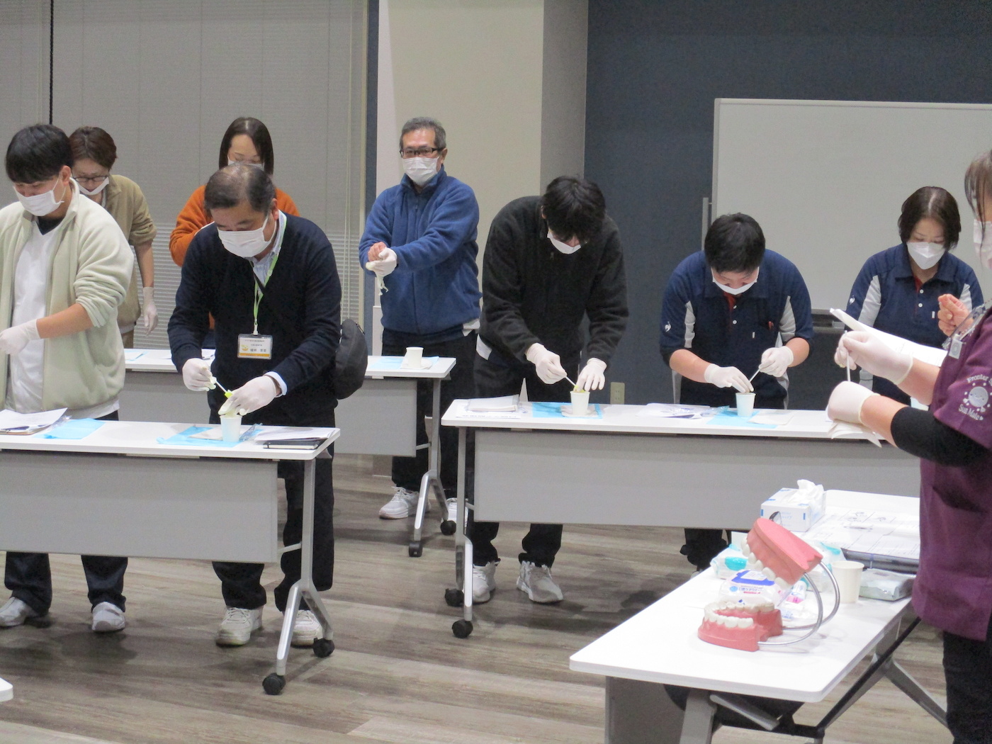 歯科衛生士による口腔ケアの研修 2026年02月24日 ほりうち歯科の歯科衛生士の方から口腔ケアについての研修を受けました。 今回は、自身でうがい等が難しい利用者の方に対して使用するスポンジブラシ・口腔ウェッティー・保湿ジェルの使い方についてが主な研修の内容でした。 実際に自分が体験することで、普段口腔ケアを受けられている利用者の方が感じている感覚や力加減等知ることができました。今後も定期的に研修を行い、ケアの質の向上に努めていきます。 Tweet