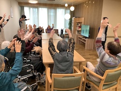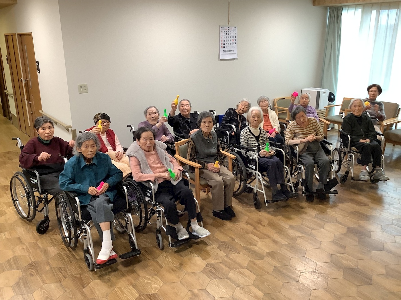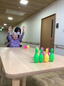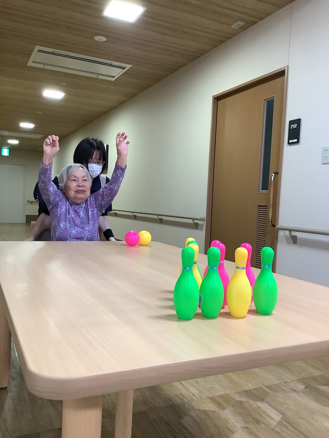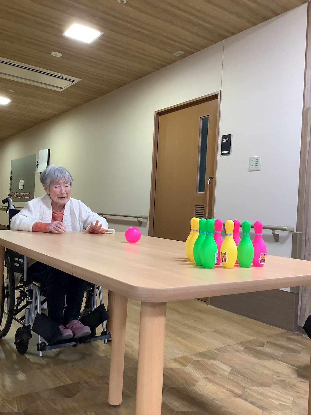 みんなで体を動かそう!!(体操・卓上ボーリング) 2026年03月23日 少しずつ暖かくなってきましたね。 特養フィーカでは体操とボーリングをしました。職員と一緒にラジオ体操をしました。 しっかり体を伸ばしています。 卓上ボーリングでは真剣にボールを投げています。 笑顔で頑張りました。みんなでハイポーズ!! Tweet