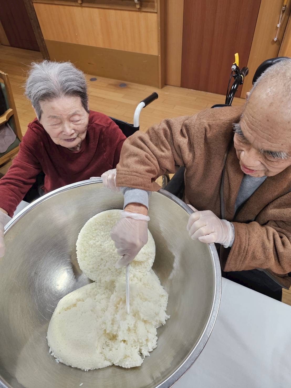 かにかまを割いたり、酢飯を混ぜたりと