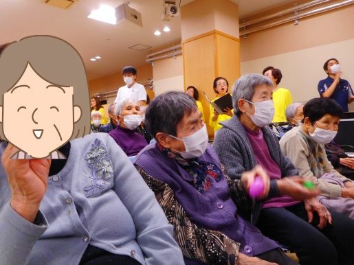 さてデイサービスでは、ボランティアの方たちと一緒に、合唱を楽しみました