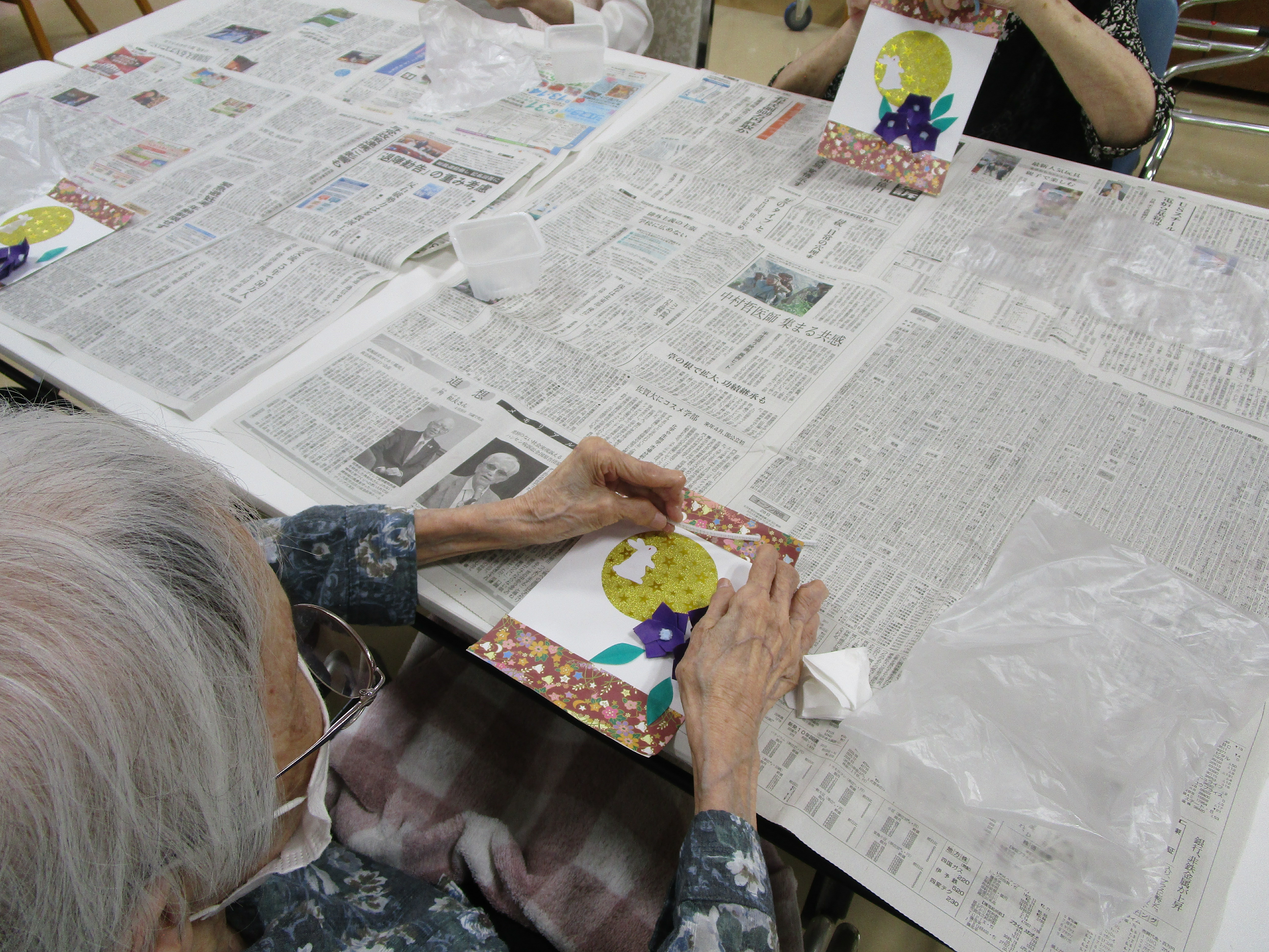中秋の名月 2025年10月14日 10月6日は中秋の名月でしたね。今年は天気が良く、名月をご覧になった方も多いと思います。 お部屋に飾ってお月見気分を味わっていただこうと、花みずきの入居者の皆さんに掛け軸を作っていただきました。 Tweet