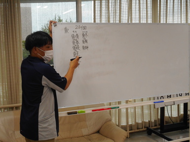 今日のレクリエーションは脳トレで利用者様に思いつく魚へんの漢字を発表していただきました(^-^)