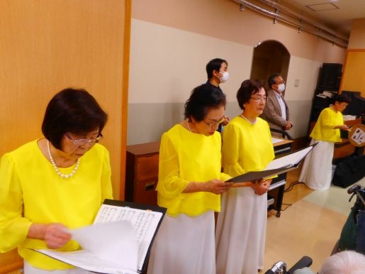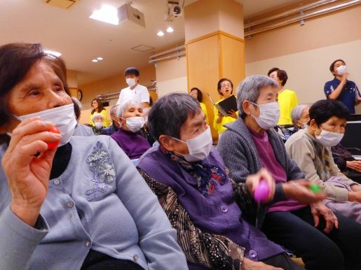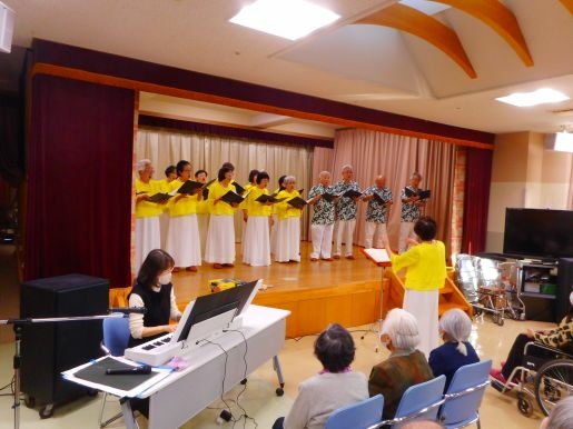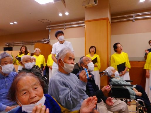 さてデイサービスでは、ボランティアの方たちと一緒に、合唱を楽しみました