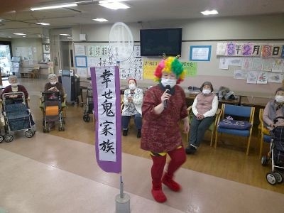 仲良しの鬼の家族が、さくら荘に厄払いに来てくれました