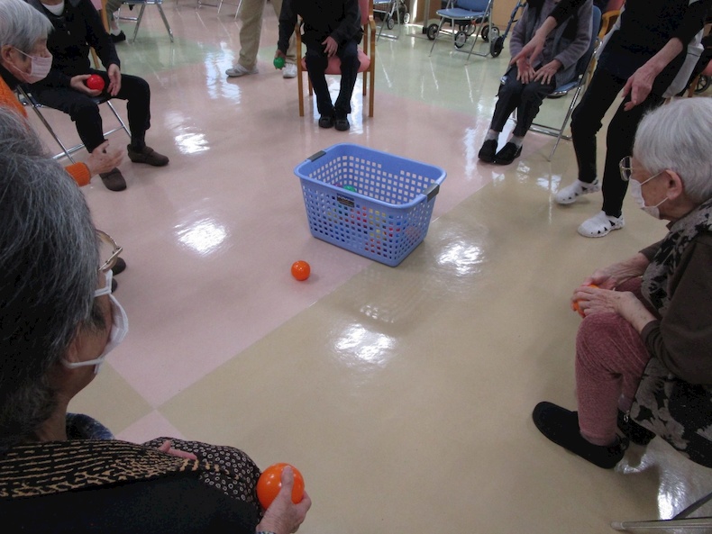 花みずきレクリエーション 2026年03月30日 花みずきの入居者の皆さんが、玉入れゲームを行いました。2チームに分かれ、5個ずつボールを持ってゲームの開始です。ユニークなボールの持ち方をする方もいらっしゃいました。 前のめりで狙いを定め慎重に投げ入れる方、隣の方の様子を見てから投げ入れる方、投げ入れるのに失敗する方もいらっしゃいましたが、皆さんそれぞれにゲームを楽しまれました。 Tweet