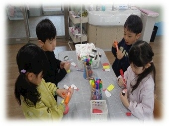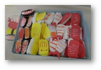 今日はお店屋さんごっこの商品(お寿司)を製作しました。