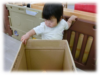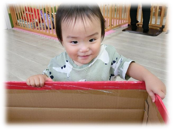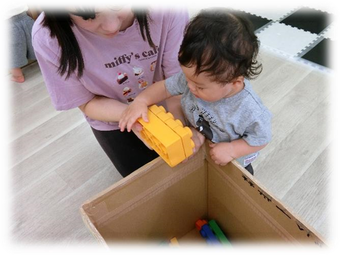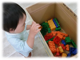 大きなブロックに興味津々で、積み上げたり、倒したりして遊んでいましたよ☆