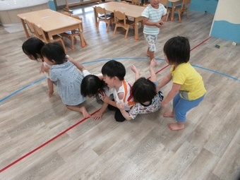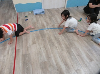 電車ごっこでレールとして遊んだり、ハイハイして前のお友達について行ったりさまざまな遊びが見られました!