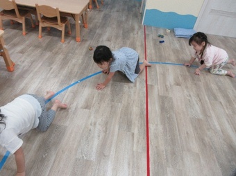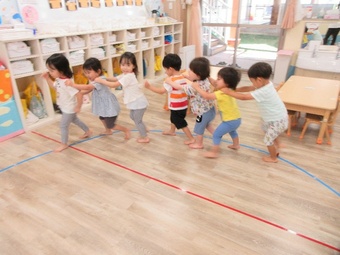 その上をたどって遊ぶことが増えてきたにじぐみさん♪