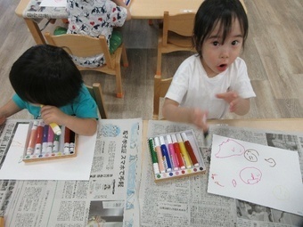 にずにゅーす~お絵描き~ 2025年07月30日 今日はお絵かきをしました。 にじ組さんはお絵かきが好きな様子で、たくさん描いて楽しんでいました☆ 「できたよ!」と見せてくれるのが、かわいらしいです♡ さまざまな個性が見られました(^O^)