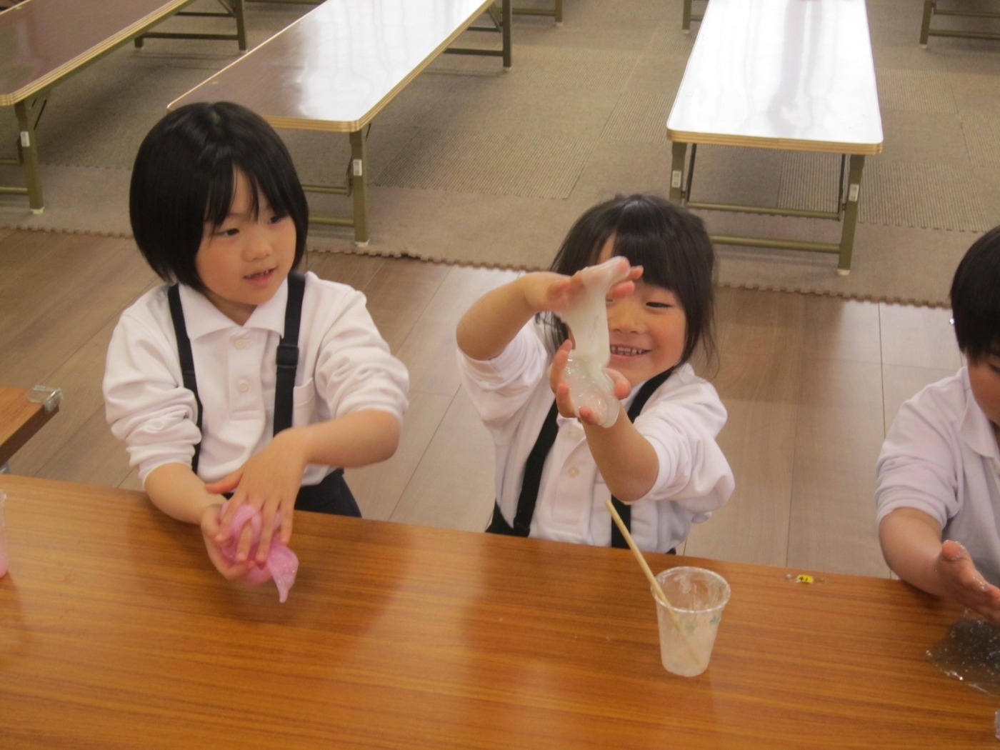 【ふくふく児童クラブ】スライム作り 2025年04月17日 1年生対象にスライム作りをしました。 「うわぁ!かたまってきた!!」「すごーく伸びる!!」 驚きの連続!!スライム作りに興味津々。 みんな上手に作れたね! Tweet