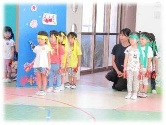 休み明けでしたが、体操、かけっこ、鳴子、見学するときのお山座りがバッチリのそら組さん(^▽^)/