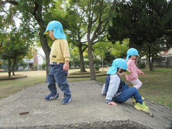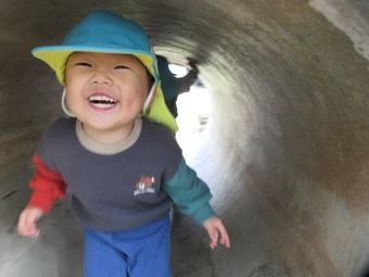 お山に上り下りしたり、トンネルに入って声の反響で遊んだりと