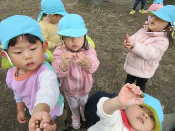 また、どんぐりがたくさん見つかり、集めている姿も!