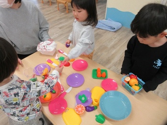 お客さんになってお買い物をしたりとお友達と一緒に楽しく遊んでいます!