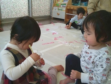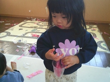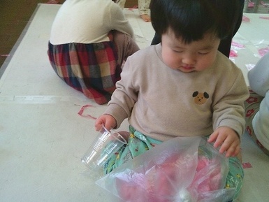花びらのように上から散らしてみたり袋に入れてシャカシャカ振ったり縦に細く割いてみたり…様々な遊び方で思い思いに楽しむ姿が見られましたよ(*^▽^*)