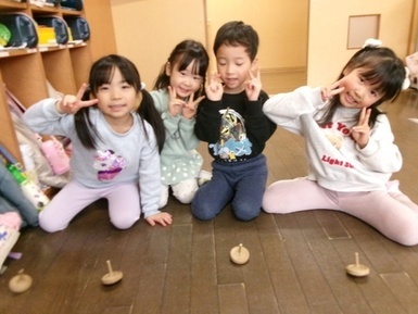 福笑い、コマ、だるま落としなど、普段はしないあそびに興味をもち、