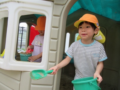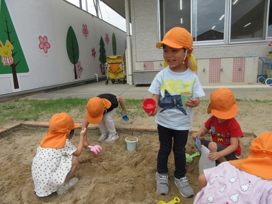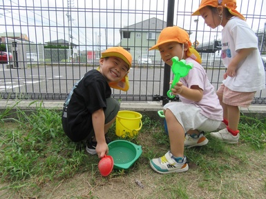 虫探しをしたり、砂場でごっこ遊びをしたりと好きな遊びを見付けて楽しんでいる姿が見られていました(*'▽')