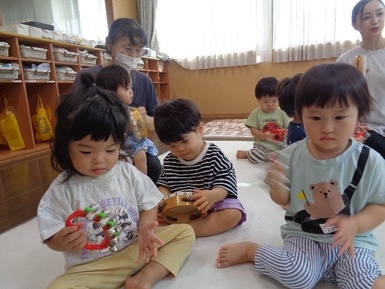 あさがおにゅ~す~楽器あそび~ 2025年10月02日 今日は楽器遊びをしました! タンブリンや鈴を手にして、音を奏でる楽しさを味わいましたよ!最後はみんなの大好きな『アンパンマン』の音楽に合わせて演奏しました! Tweet