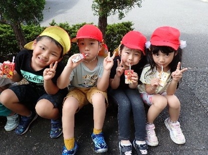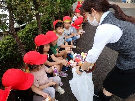 芋ほりのあとは、おりいぶ荘の方にジュースを貰って飲んだり