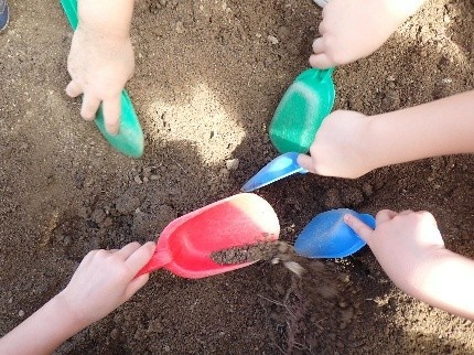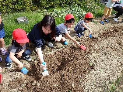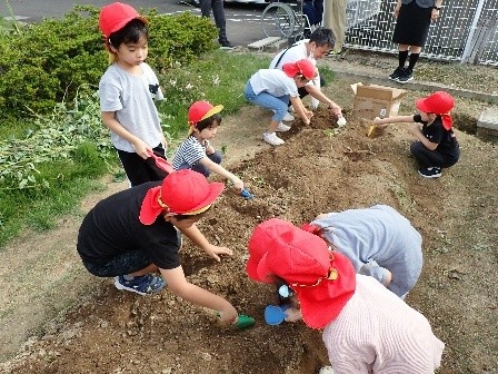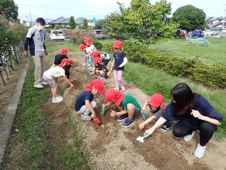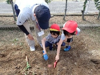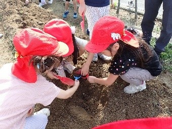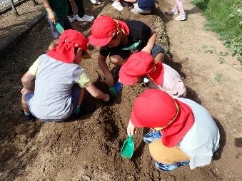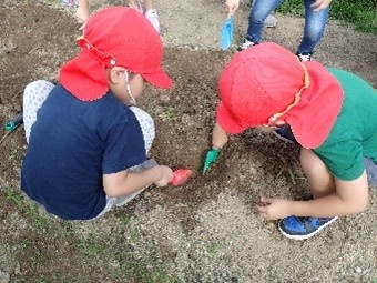 畑では、土に触れたり掘ったりして土の感触を楽しむ姿もありました!