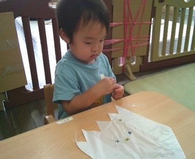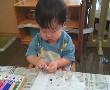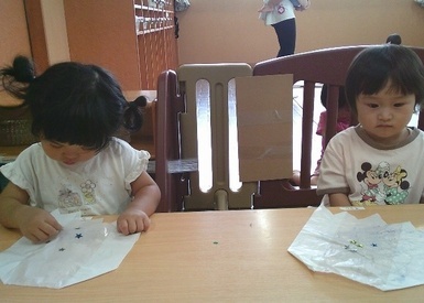 あさがおにゅ~す~おばけ製作~ 2025年10月08日 今日はおばけの製作をしました! 水性マーカーでお絵かきしたビニール袋のおばけにキラキラの星シールや目と口のシールをペタペタ貼って子どもたちの個性が溢れるかわいらしいおばけが完成しました(*^-^*) Tweet