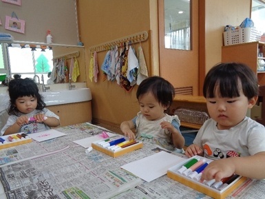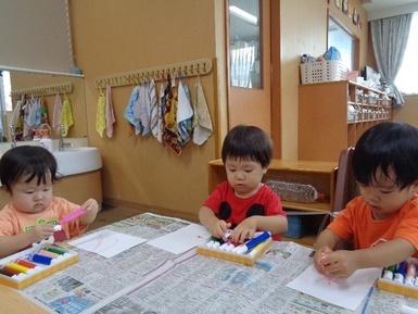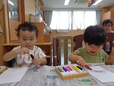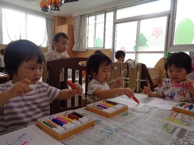 あさがおにゅ~す~製作~ 2025年10月16日 今日は芸術の秋ということで、好きな色のマーカーを使って、お絵描きをしました!!少しずつ色の名称を覚えてきたあさがお組さんは、「あか!」「ぴんく!」と言いながら製作に取り組んでいましたよ! Tweet