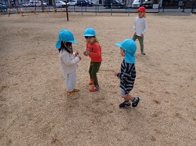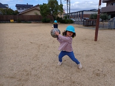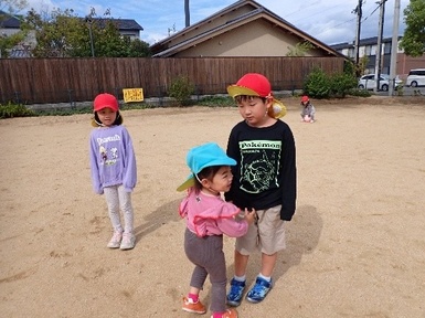 今日は、ひまわり組さんのお兄さん、お姉さんと手を繋いで、すみれ組さんになって初めてみんなでいく伏石南公園へお散歩に行きました( *´艸`)出発前から「公園!」と嬉しそうに声を上げ、ひまわり組さんに優しく手を引かれながら、しっかりとした足取りで歩く姿が見られました。公園に到着すると、いつもと違う景色に「わぁ!」と目をキラキラ輝かせ、滑り台、ボール遊び、追いかけっこ、砂遊び、虫取りなど、様々な遊びに夢中になっていました( *´艸`)ひまわり組さんに優しく声をかけてもらいながら、好奇心いっぱいに体を動かして遊ぶ姿がみられた一日でした(*^。^*)
