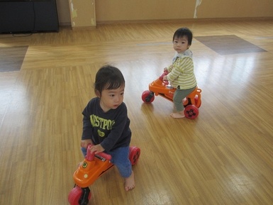 天気がいい日は園庭であそんだり、ホールで乗用玩具の乗ったりと体を動かして沢山あそびました!!( ^)o(^ )