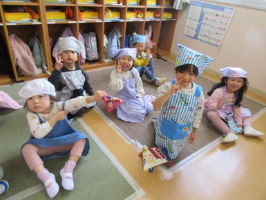 また、今週から給食当番が始まりました。エプロンを身に着けるのを楽しみにしていた子どもたち。