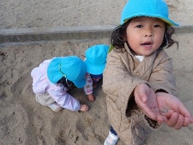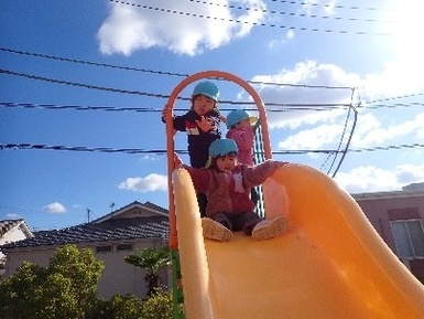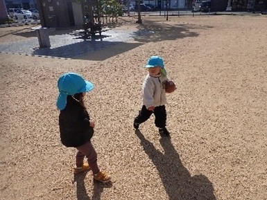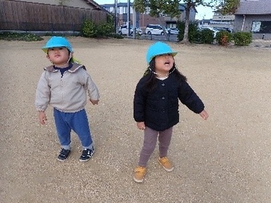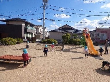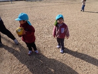 今日、伏石南公園へお散歩にいきました。天気にも恵まれ(*^。^*)広い公園でのびのび体を動かすことができました。すべり台を何度も滑ったり、砂場で友だちと一緒に遊んだり、地面にお絵かきをしたり、ボールを追いかけたり、追いかけっこをしたりと、様々な遊びを満喫していました。たくさん身体を動かして、充実した表情で過ごしていましたよ(#^^#)