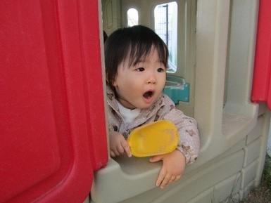 また、園庭では砂場や固定遊具のハウスで楽しくあそんでいます(*^。^*)