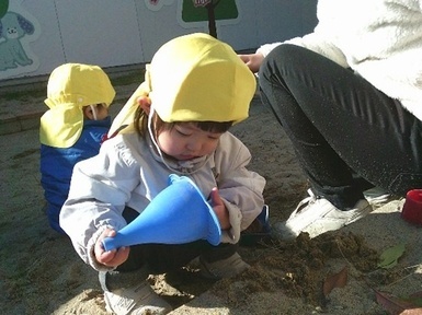 園庭ではそれぞれ面白いものを見つけ、夢中であそぶ姿がありました(^^♪