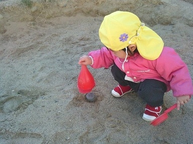 砂場で型抜きや山作りをしたり友だちや保育者と追いかけっこをしたり等、好きな遊びを見つけて思い切楽しむ姿が見られましたよ(*^▽^*)