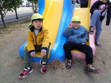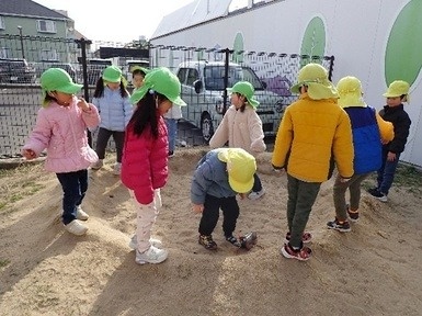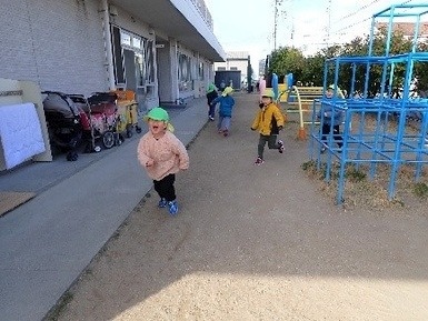 今日は、園庭遊びをした後に
