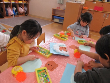 最後は指で絵の具の感触を楽しみながらスタンプをする姿がありましたよ(#^^#)
