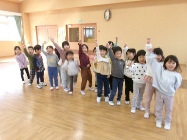 今日は、ホールで大繩をした後に