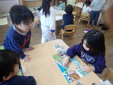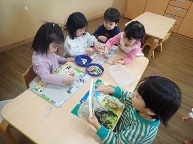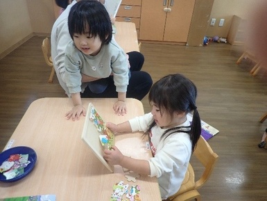 今日は天気が良かったので園庭遊びをしました!すみれさん、今日も元気よくかけっこやかくれんぼなどルールのある遊びを友だちや保育者と楽しんでいました♡保育室では積み木でドミノ倒しをしたり、パズル遊びに夢中になっていました(*'▽')