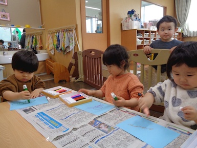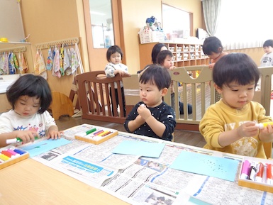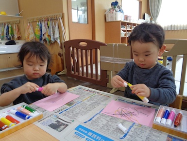 あさがおにゅ~す~ひな人形~ 2026年02月12日 今日はひな人形の製作をしました。好きな色のマーカーを選び、思い思いに描いて、ひな人形のお洋服を作りましたよ!製作時は、「あかー!」「あお!」など知っている色の名称を言葉にしていました! Tweet