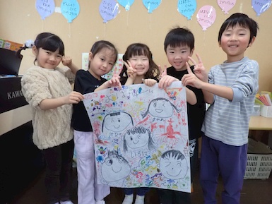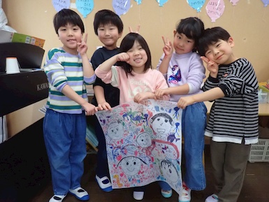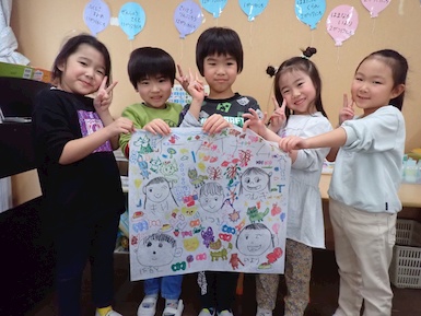 今日は、卒園式に向けてチーム替えをして団旗の製作をしました☆ チームの友だちと話し合ってチーム名を決めたり、顔や絵を描いたりして、 かわいい団旗が完成しましたよ(*^-^*)卒園式まで、あと少し…!みんなで力を合わせて頑張ろうね☆彡