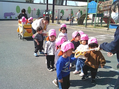 今日は園庭で遊ぶ前に保育園の外を少しだけお散歩しました。お見送りに来てくれたお兄さんお姉さんに手を振ってお散歩に出発!西側駐車場に職員の車が停まっているのを見て「くるまいっぱい!」「これ○○せんせいの?」と興味津々なあさがお組さんでした( ´艸`)園庭では砂遊びや虫探しをして暖かい日差しの下、外遊びをたくさん楽しみました♪