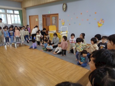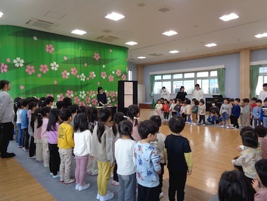 今日は修了式がありました! まずは、『修了式』とはなにかみんなでお話ししましたよ♬ 次に先生たちの劇『おべんとうバス』では、今年1年間頑張ったことを保育者が発表しました! 最後に、さくら組・たんぽぽ組さんが来年の抱負を大きな声で発表してくれました! 今年1年間で、たくさんのことが出来るようになったさくら伏石保育園のお友だち! また来年もいろいろなことにチャレンジをして、楽しい日々を過ごすね♡